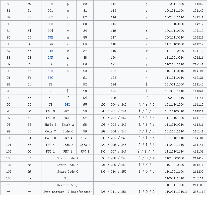 Code 128 - Coding Table
